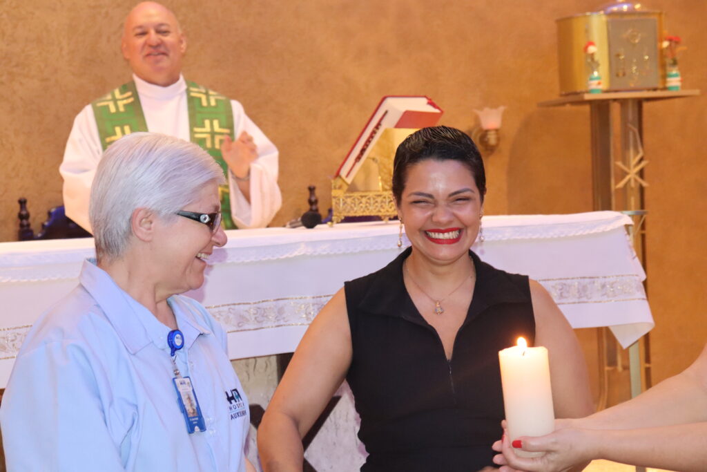 A celebração, conduzida em clima de alegria e reflexão, destacou a importância da espiritualidade no ambiente hospitalar e o exemplo de amor ao próximo que inspira o trabalho diário no Hospital Auxiliadora.