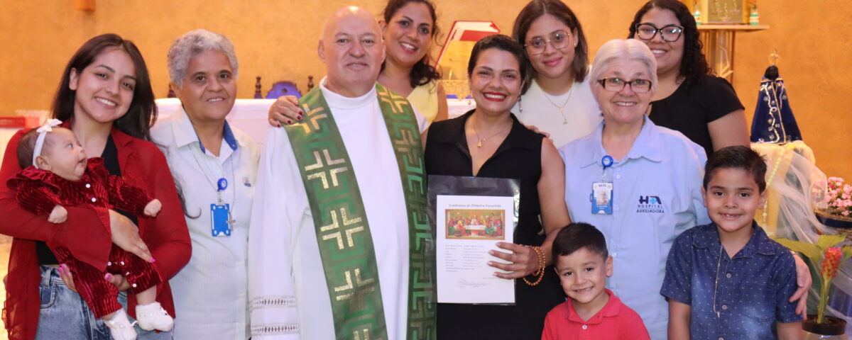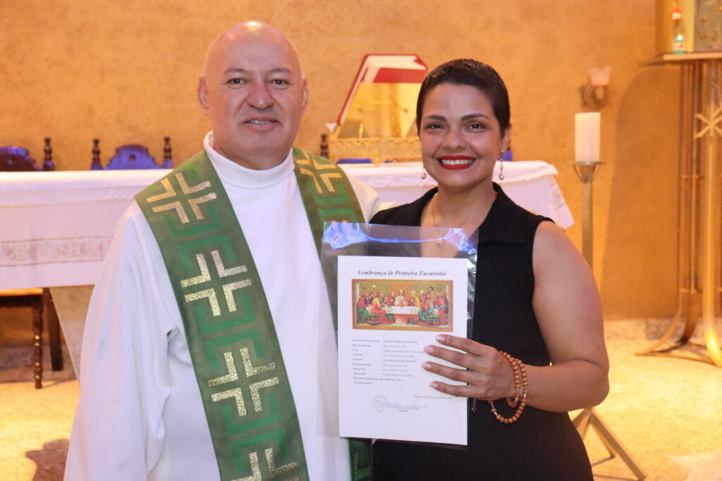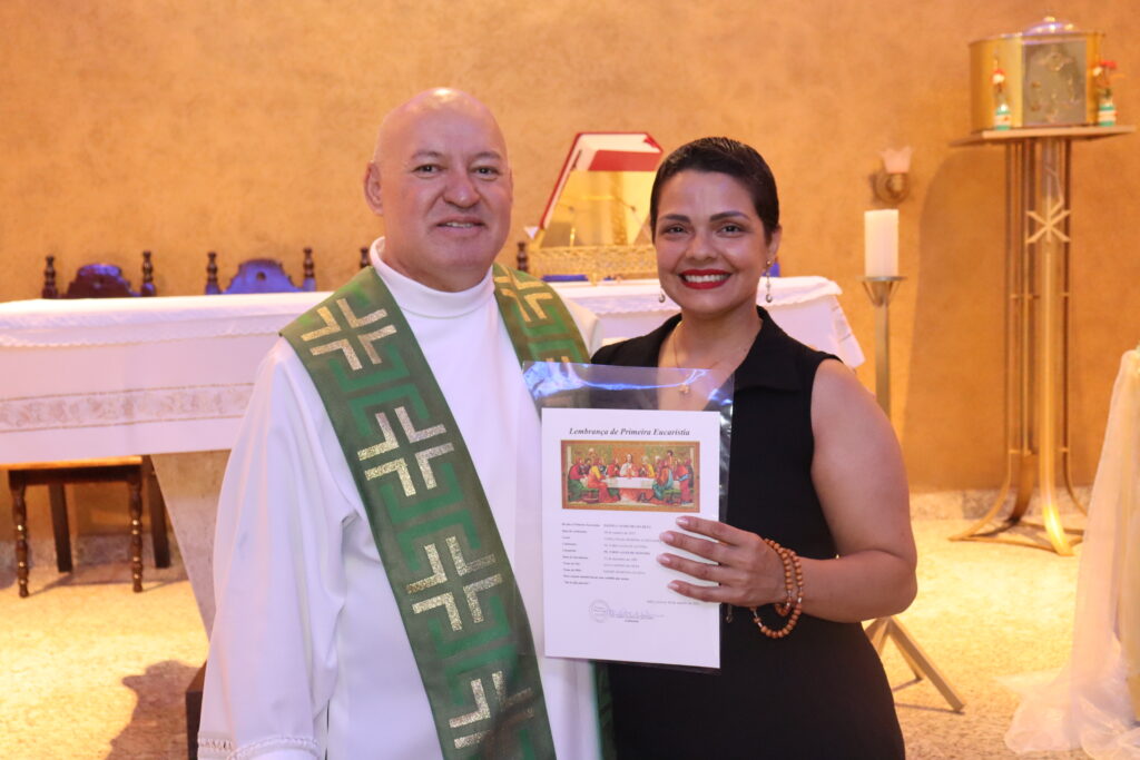 Na ocasião, também foi celebrada a primeira comunhão da Daniela Aparecida, um momento de profunda emoção e significado espiritual, que reforçou o sentimento de unidade e fé entre todos os presentes.